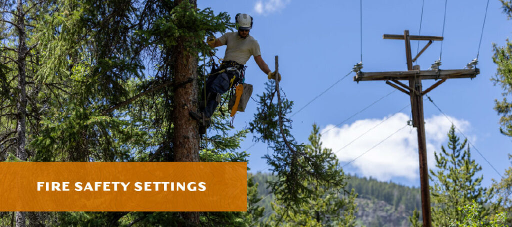 Durante períodos de alto riesgo de incendio, podemos ajustar el funcionamiento de ciertas partes de nuestro sistema eléctrico habilitando Configuración mejorada de seguridad de la línea eléctrica, a veces llamado Configuración de seguridad contra incendios. Estas configuraciones son una herramienta importante para ayudar a reducir el riesgo de incendios forestales y proteger nuestra área de servicio.