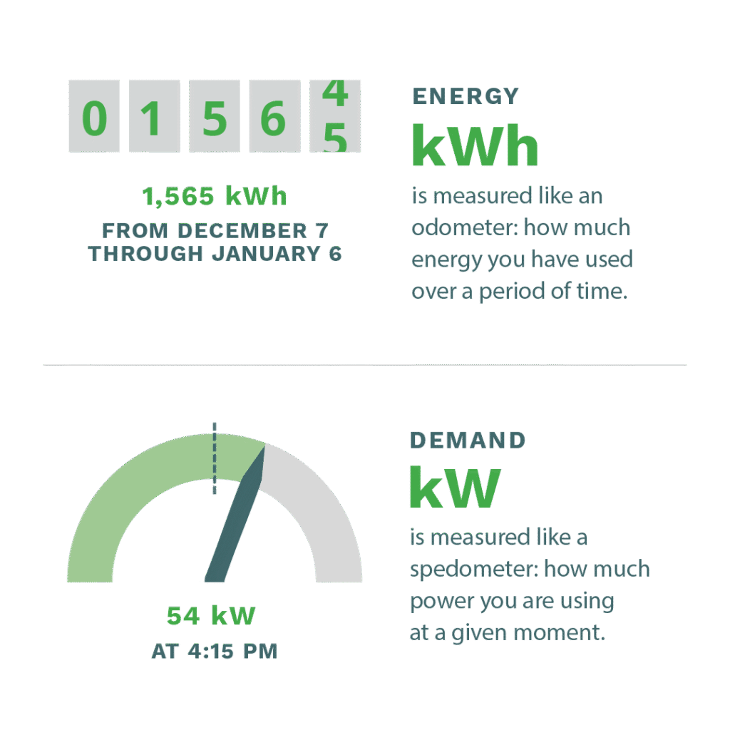 Para entender su nueva factura, es útil distinguir entre las dos formas en que medimos la electricidad: