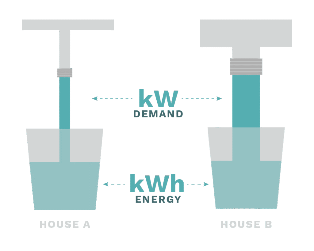 De manera similar, una casa que requiere más electricidad a la vez requiere una infraestructura eléctrica más fuerte y costosa para proporcionar esa energía tan rápidamente.